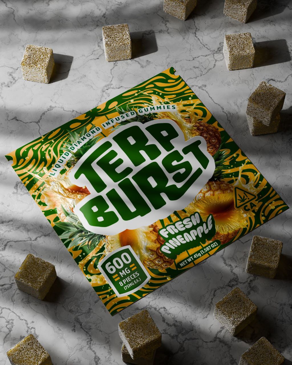 A pack of terp burst gummies contains 8 pieces of 600mg infused thc in each piece. Each piece you consume takes you one step closer to an unforgettable experience.